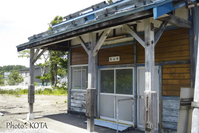 「藤山駅」の表札は外され窓と出入り口は板で塞がれている。