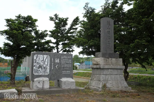 敷地内には、地域の開拓碑が建立されていて、かつては辺りが地域の要所だったことを窺わせる。