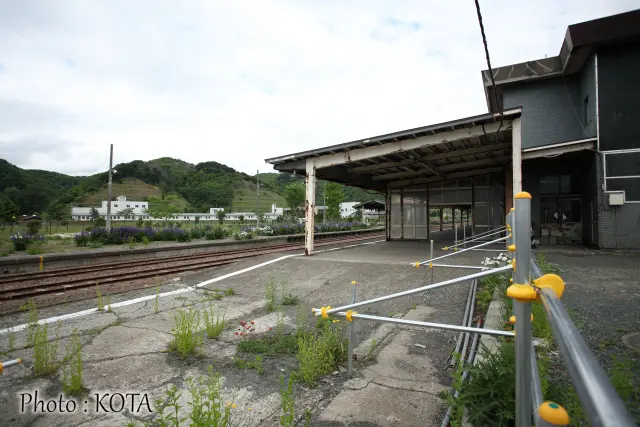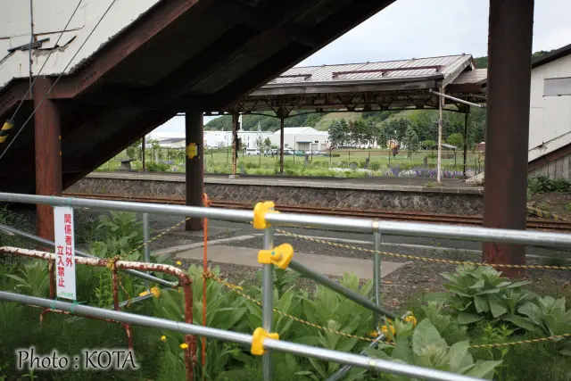 駅舎は閉鎖され、また、その周囲からもホームに侵入できないようバリケードが施されている。
