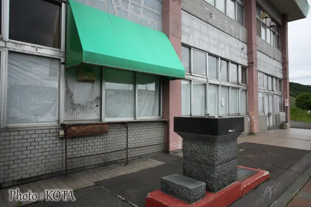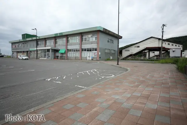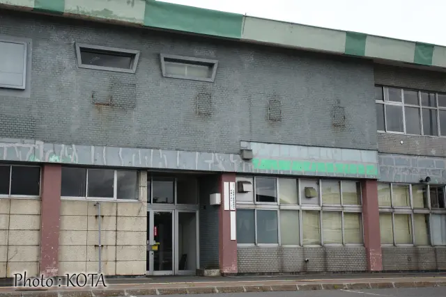 2階壁面には、かつて「JR留萌駅」の文字が張り付けられていた形跡が。