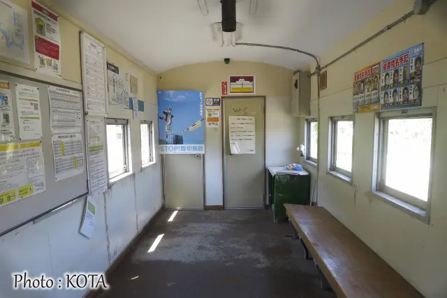 何年か前に訪ねたときに「改築工事予定は中止」といった貼り紙があった。当時は古い駅舎を改築する予定だったものの、廃線が決ったわけだし今さら金をかける必要はないよね、ということだったのか。