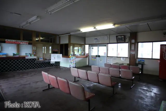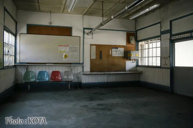 すっきりと整頓されているが、多分切符が販売されていたであろうカウンターに、かつては有人駅だったことが見て取れる。