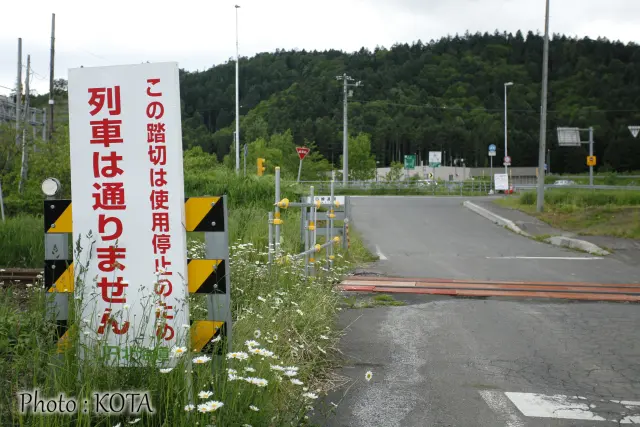 踏切は撤去されているのに「踏切注意」とはこれいかに(笑)