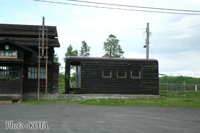 もともとは貨車を使っただるま駅だったが、ロケ地の雰囲気に合うよう板張りでカムフラージュされ、現在もその状態のまま保存されている。