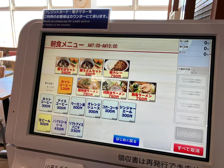 キャッシュレス決済の方は、店内カウンターで店員さんに注文して支払います。