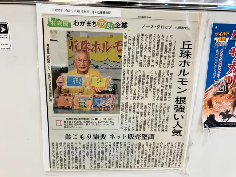 こちらのショップには、『札幌黄』を使用した特製タレにホルモンを漬けた『丘珠ホルモン』を販売しています。