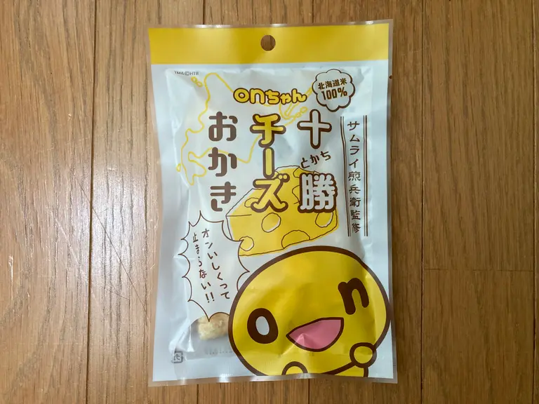 HTB(北海道テレビ)のマスコット onちゃんの『十勝チーズおかき』です。
