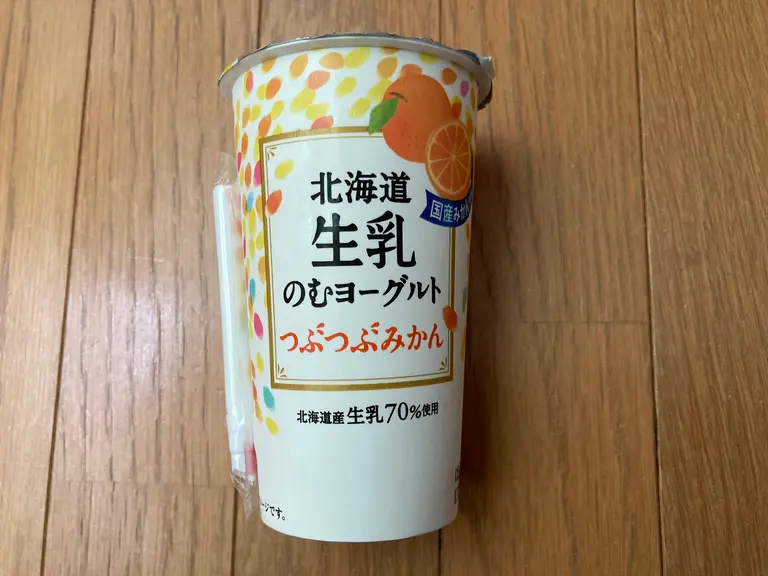 国産みかんのつぶつぶが入った、美味しいヨーグルトです。