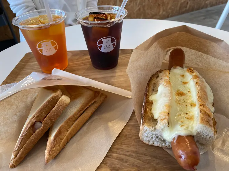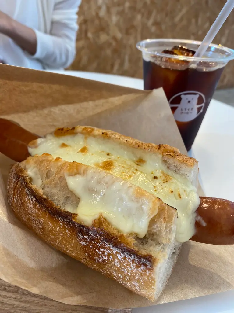 パンもチーズもソーセージもすべておいしかった。そしてこのソーセージの大きさ!あまりの大きさに写真におさまりきってない。 パン自体も結構なボリュームだったけれども、それ以上にソーセージの存在感がスゴイ ♪♪