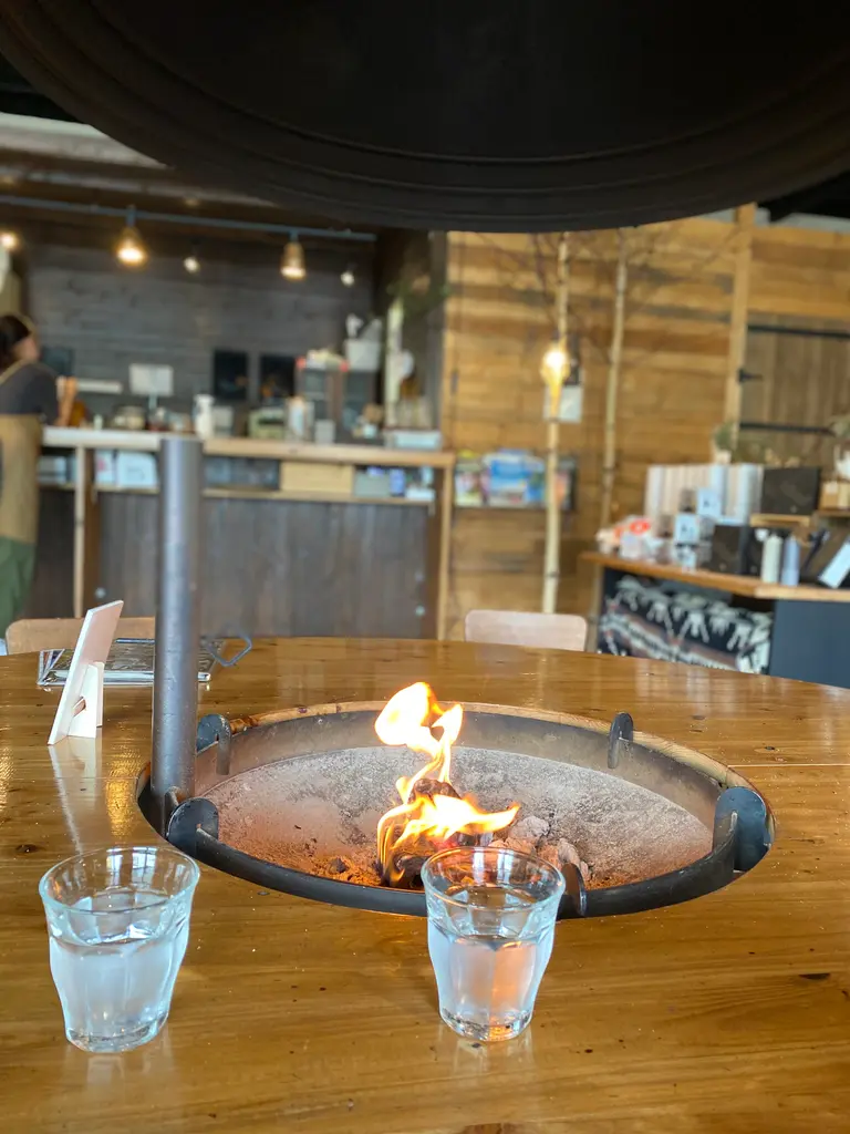 そういわれればドアに「TAKIBI」と書かれていたっけ。このことだったんですね。火って不思議とじーっと見ちゃいますよね。そしてなんだか落ち着く。寒い季節はさらにいいかも。