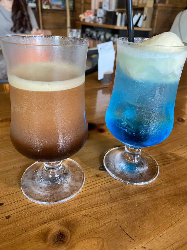 右:銭函夏色クリームソーダ まずネーミングがかわいい。地名が入っているのも好感が持てます。ソーダはさわやかな酸味があり、それほど甘くなくノンアルコールカクテルのような味わい。バニラアイスとの相性もバツグン。