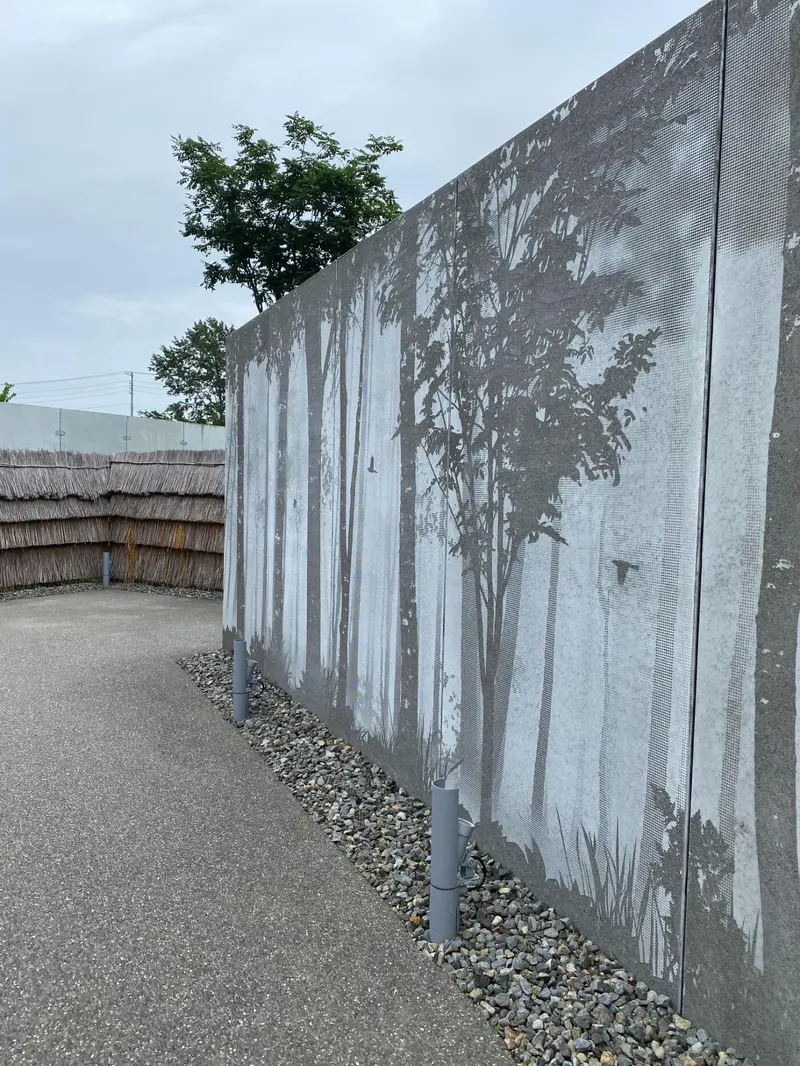 コンクリート壁に描かれた木々の奥行き感すごいですよね!(あと水でぬれたコンクリートのような見た目で涼しげだなぁって思いました)
