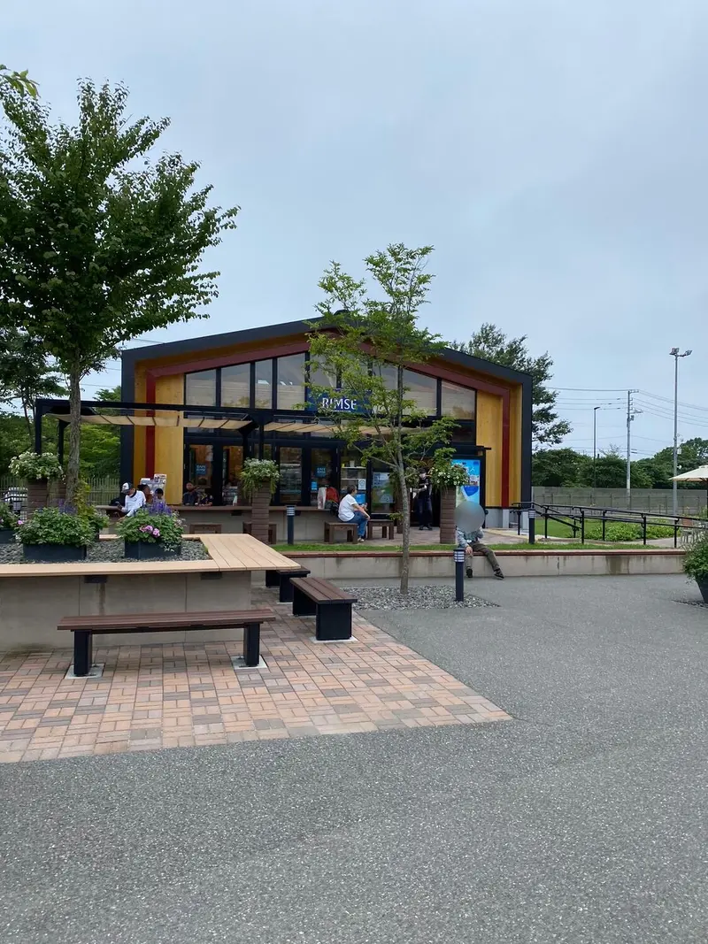 ここには、カフェが2店舗と休憩用のベンチ・テーブルが並んでいるエリアになります!