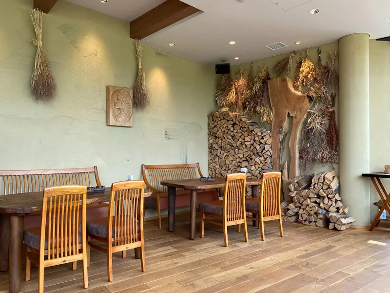 エントランス棟にある”焚火ダイニング・カフェ ハルランナ”です。