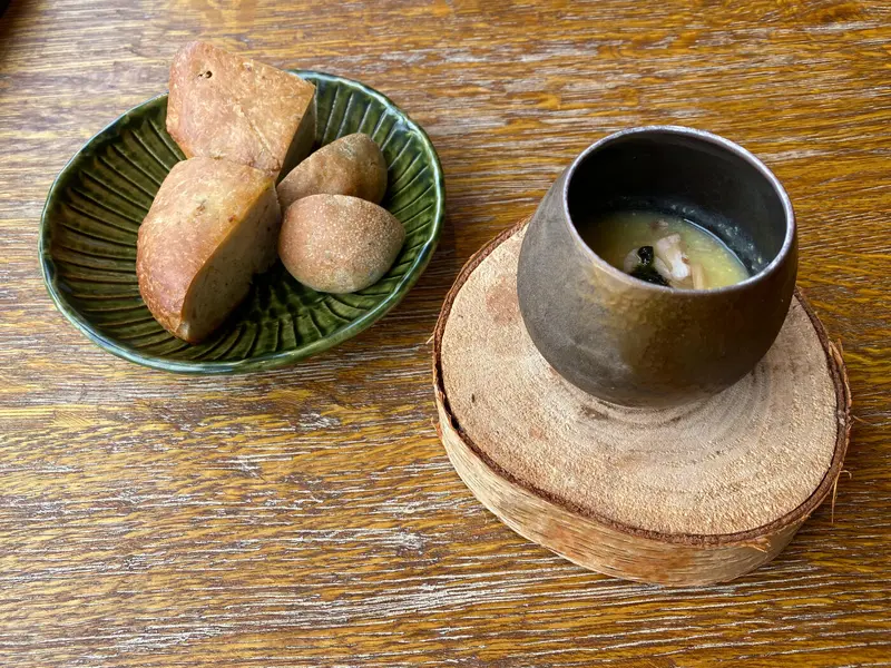 パンは、よもぎとくるみのパン&よもぎときな粉のパンの2種でとっても良い香り。