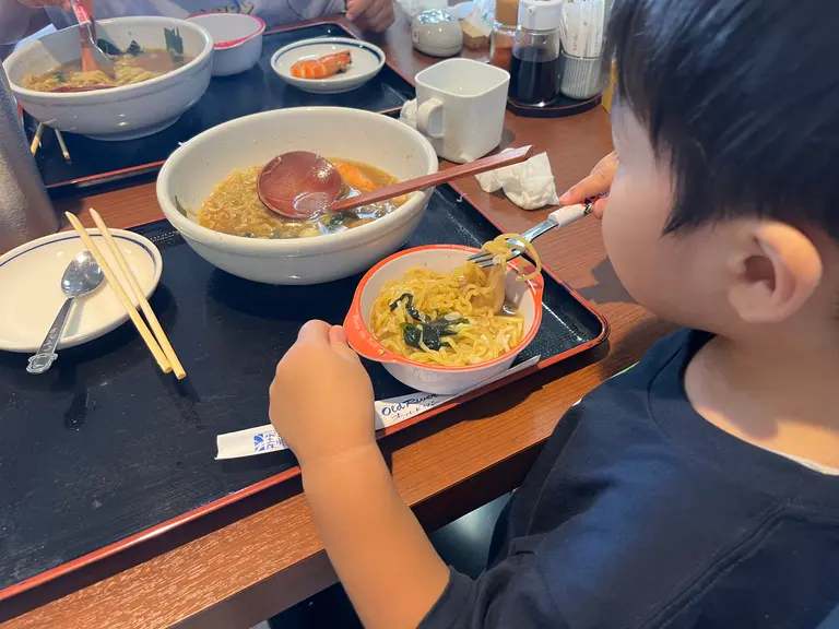 子供向けのメニューというものはないのですが、うちの子供たちは「ハーフラーメン」¥500 を注文しました。