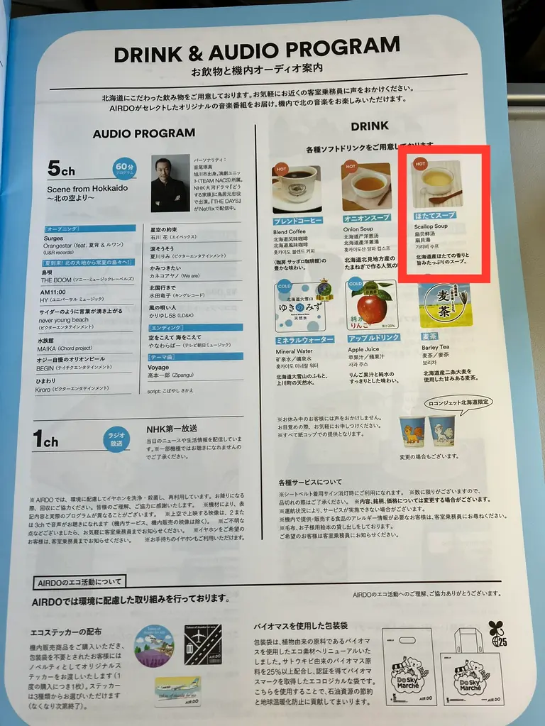 このスープは、「北海道ぎょれん」とAIR DOが協力し、北海道のホタテをプロモーションして作られたもので、2021年12月から2022年2月までの期間限定で、機内サービスドリンクで提供されていました。
