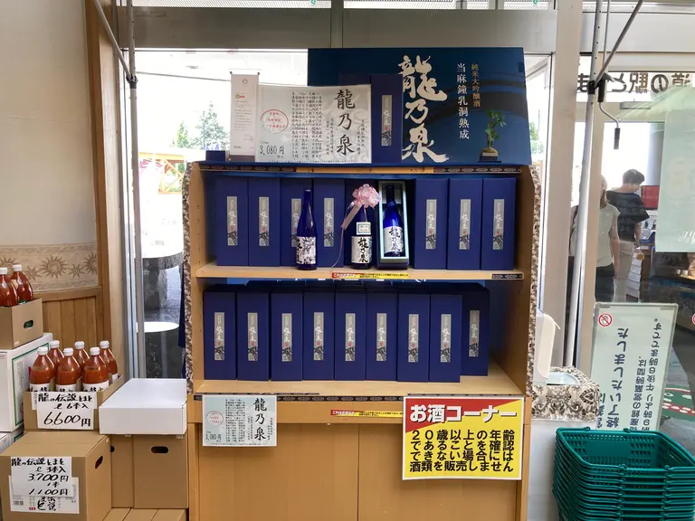 旭川・高砂酒造と とうま振興公社がタッグを組んで完成させた《当麻鍾乳洞で熟成した日本酒純米大吟醸酒「龍乃泉(りゅうのいずみ)」》も売ってました。