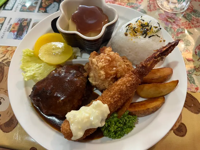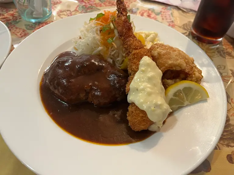 私は、ハンバーグ・エビ・唐ランチをいただきました。