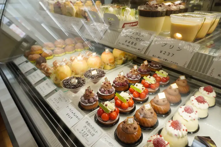 ケーキやタルトが30種類ほど並ぶほか、クッキーやマカロン、フィナンシェなどの焼き菓子も豊富です。