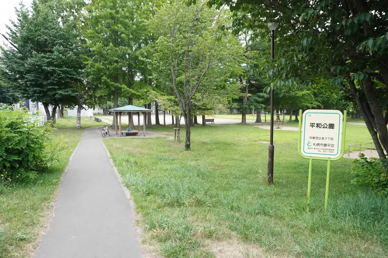 平和の名前がついているのは、陸軍兵士を供養する「月寒忠霊塔」が建っているため。