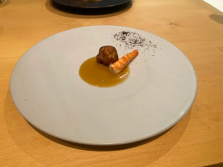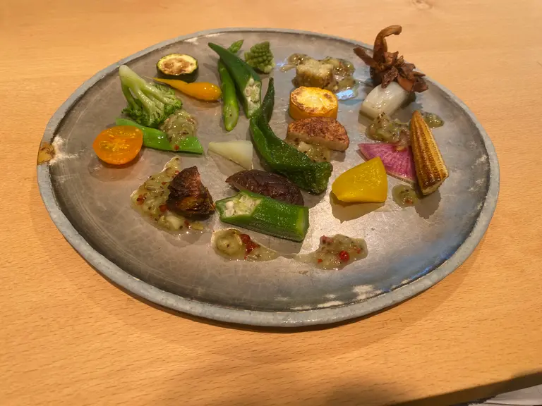 茶色いのがカリフラワー(すごく甘みを感じました)と茹でた車海老、ソースは魚介とブルーチーズ、甘酒で出来ているのだとか!クリーミーでと~っても濃厚!