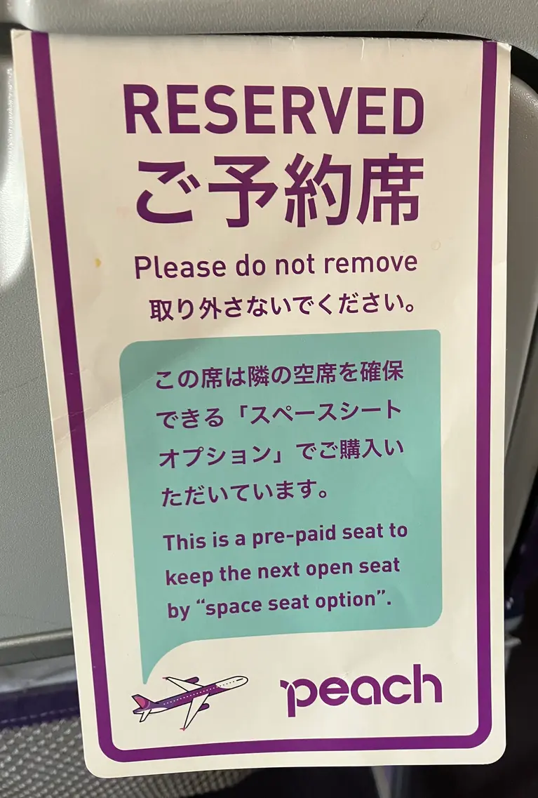 スペースシートオプションで確保した席には、『RESARVED』(ご予約席)の表示をしてくれます。