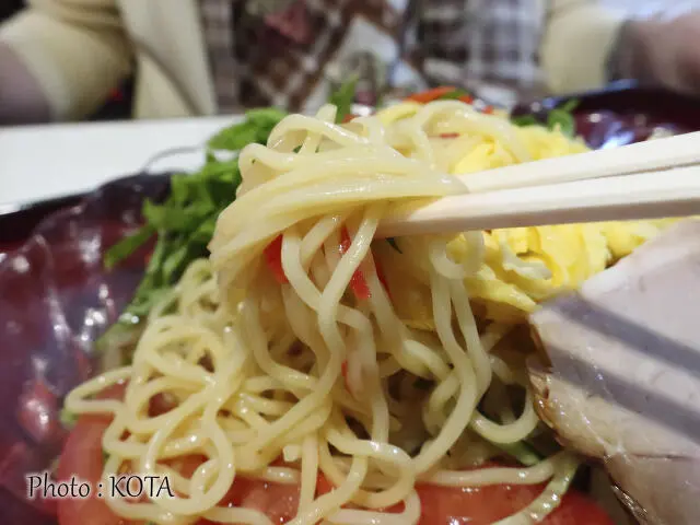 シャキッとした細麺を引き立てるのは、甘酸っぱくコクのあるタレ。
