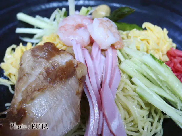 おおっ、なんて美しく涼し気な。いきなり、サラダのような冷やし中華の登場であります。