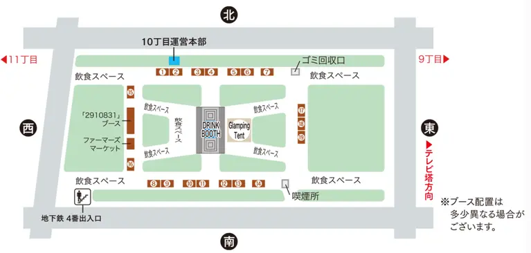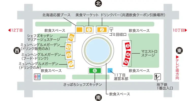 さっぽろオータムフェストの会場は、大通公園4丁目~11丁目の中でテーマが分かれた7つの会場ができ、300近いお店が出店します。(一部会期中の入れ替わりあり)