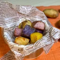 りんご飴のように串に刺して飴を絡めて固めたお菓子です。小腹や甘いものが欲しいときにはピッタリ!