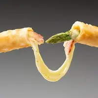 特製生地にアスパラと刻んだベーコンをまぶし、5種類のチーズがたっぷりのスティックフードでなんと長さ30㎝以上!!とろ〜りチーズとサクサク生地の食感のコンビネーションは食欲がそそられますね!