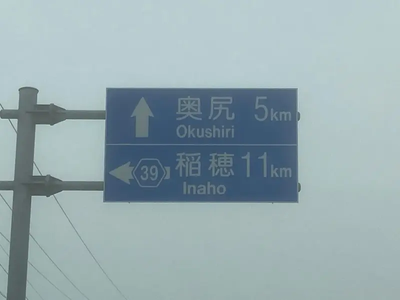 途中、ふきのとうを見つけて俳句を読んだり海沿いの道から、北海道本島が見えて盛り上がったりしながら、いよいよ見えて来た青看板には、、、。