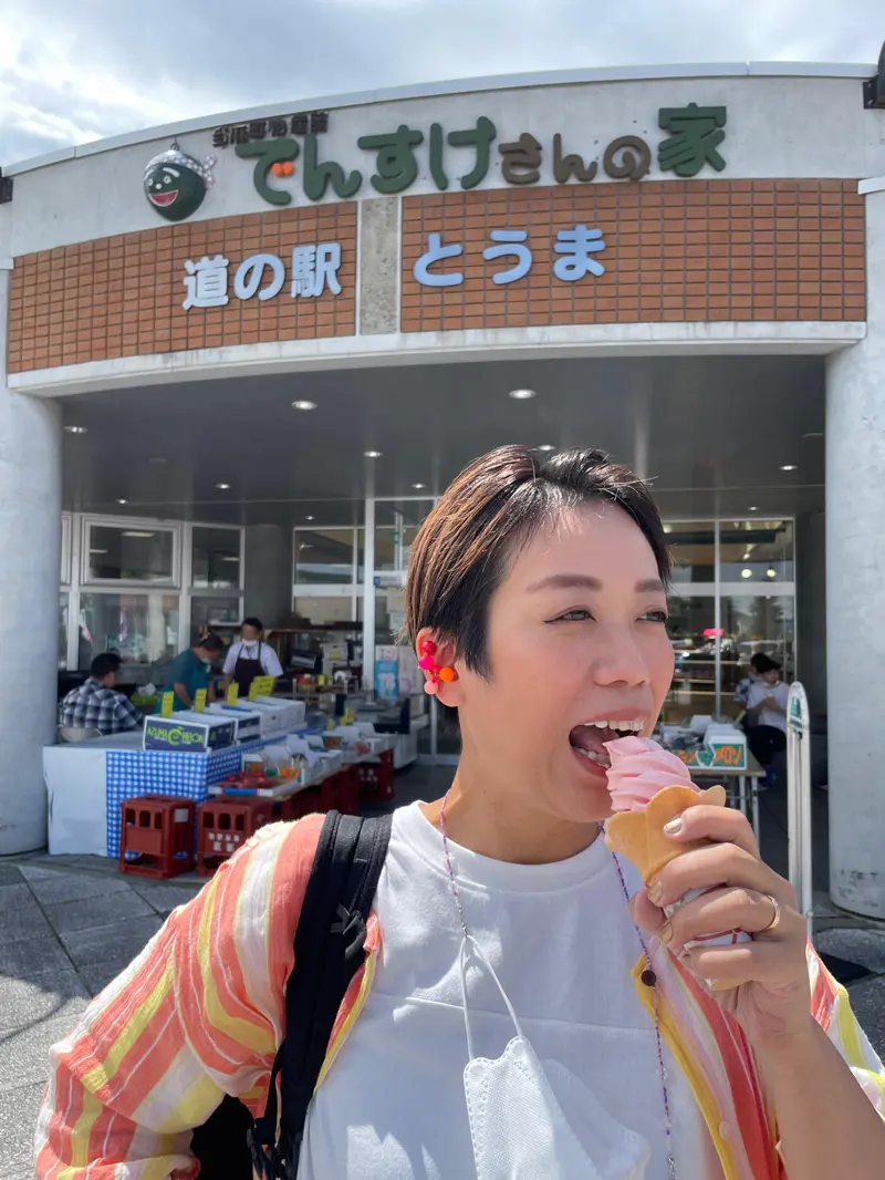 残念ながらこの日は道の駅にでんすけスイカの入荷がなかったようなので、スイカ味のソフトクリームを食べて次の場所へ向かいます。