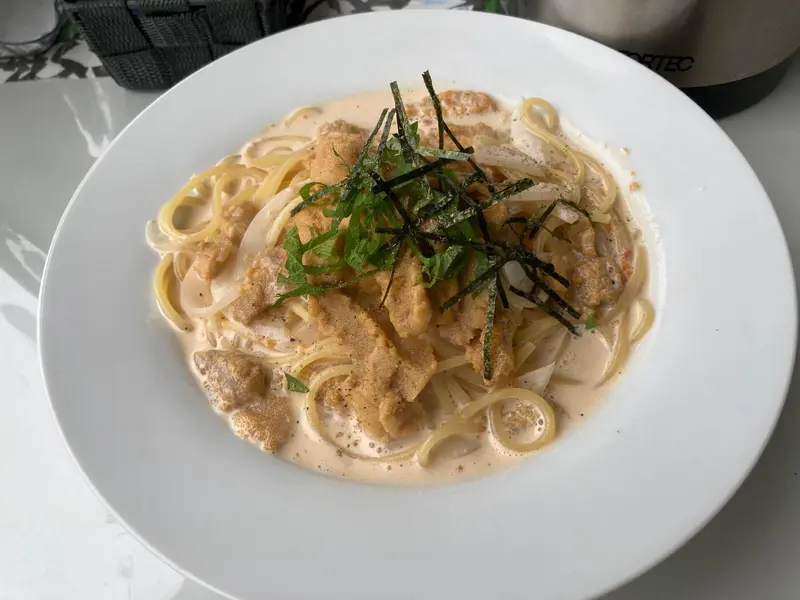このレストランのおすすめは、奥尻島産ウニを使った期間限定の料理との事でしたので、それを頼みました。