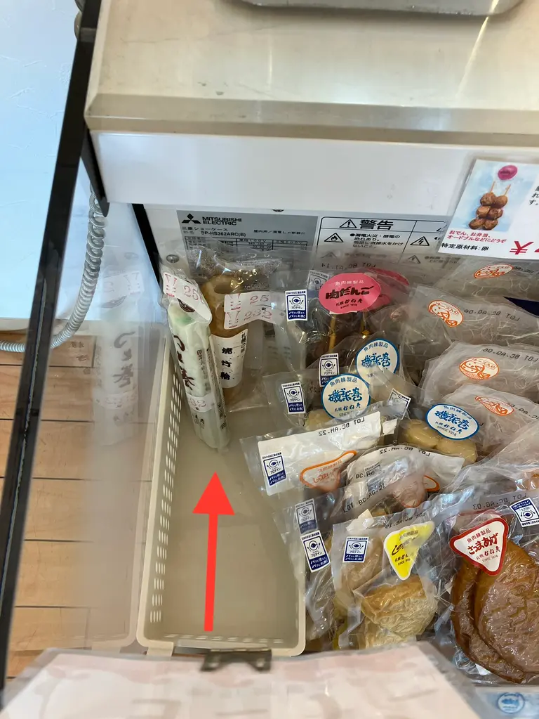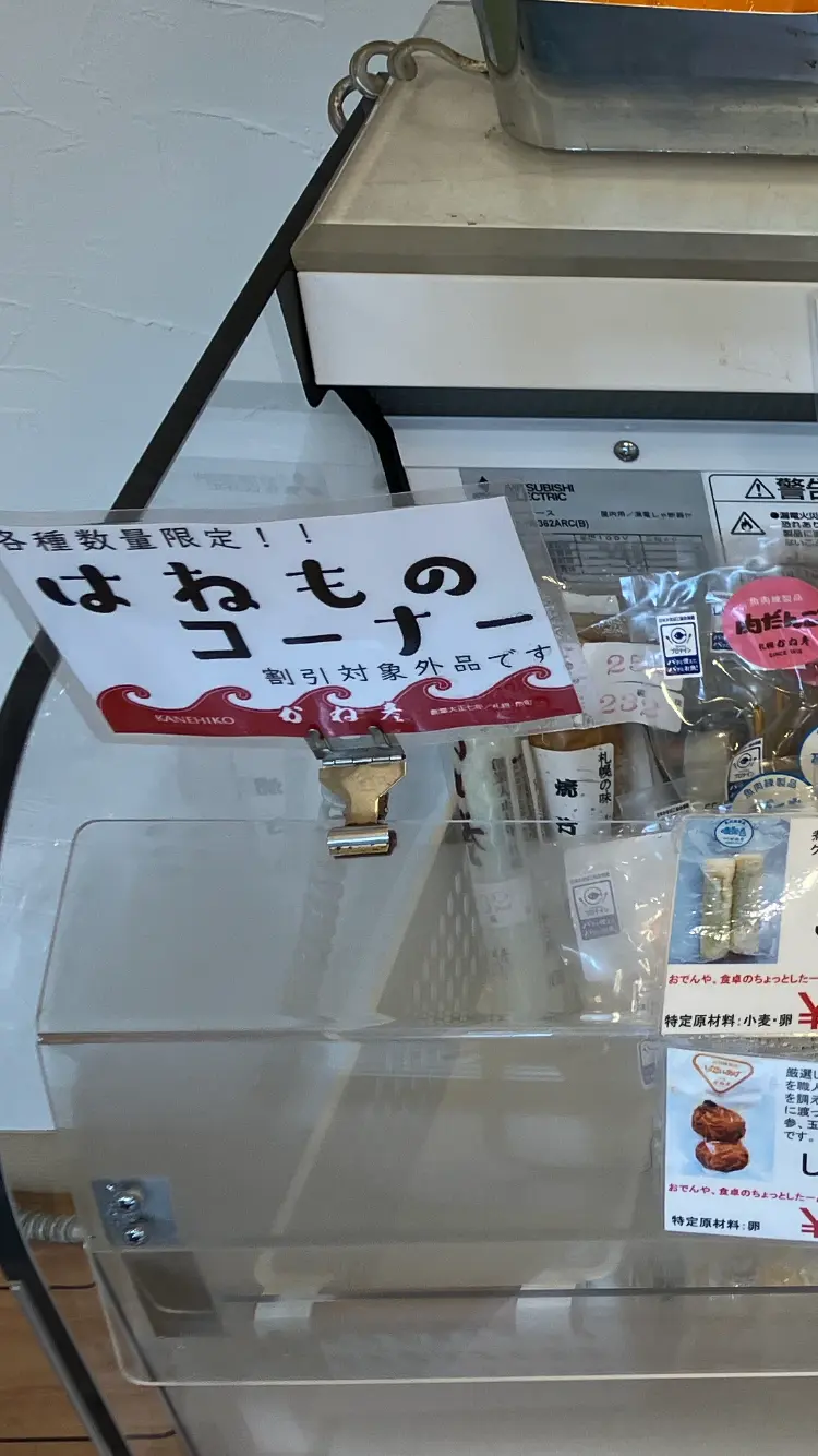 私のおすすめは、レジカウンター横にあるショーケースの左端の「はねものコーナー」に陳列されている「はね品」の商品です。