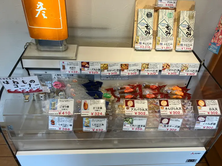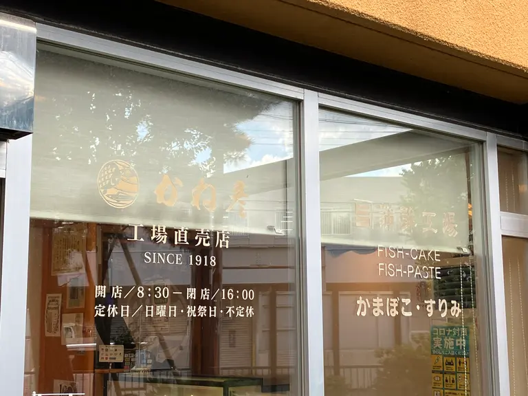 こちらの工場では、かまぼこやちくわなどの練り物や蒲鉾などを作っており、工場に直売所が併設されています。