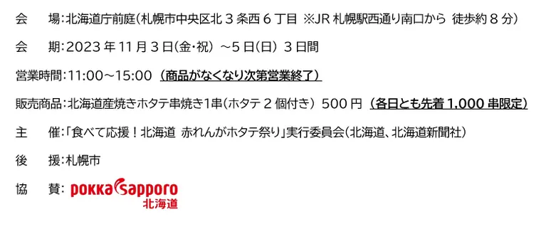 「食べて応援!北海道 赤れんがホタテ祭り」事務局
