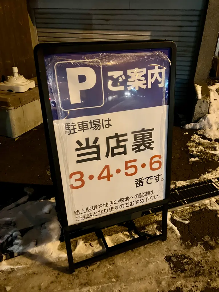 (駐車場の3、4、5、6の駐車枠。「一鶴」の看板が付いています。)
