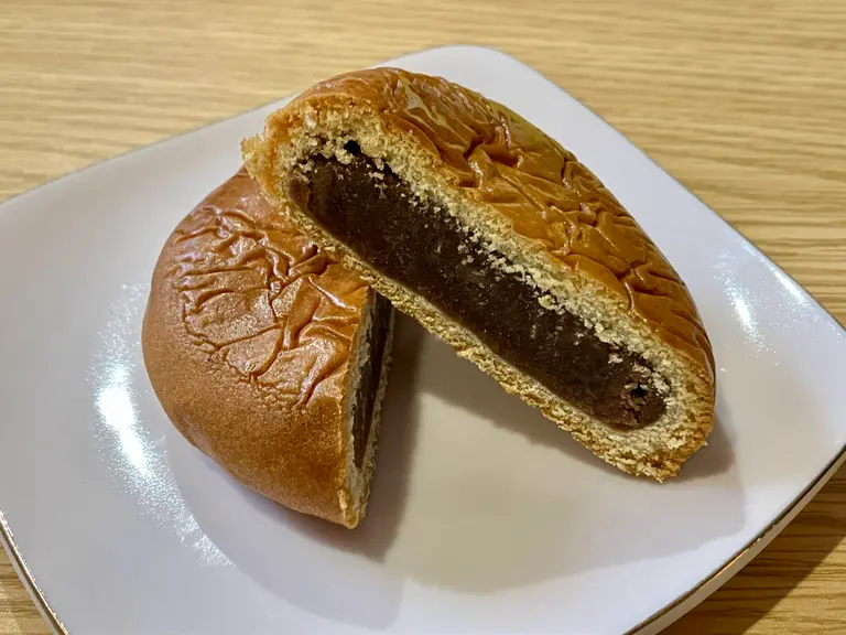 『月寒あんぱん』は、薄皮の生地の中に甘いこしあんがたっぷり詰まっているものですが、見た目や食べた感じもパンというよりは、まんじゅうや月餅に近い感じがします。