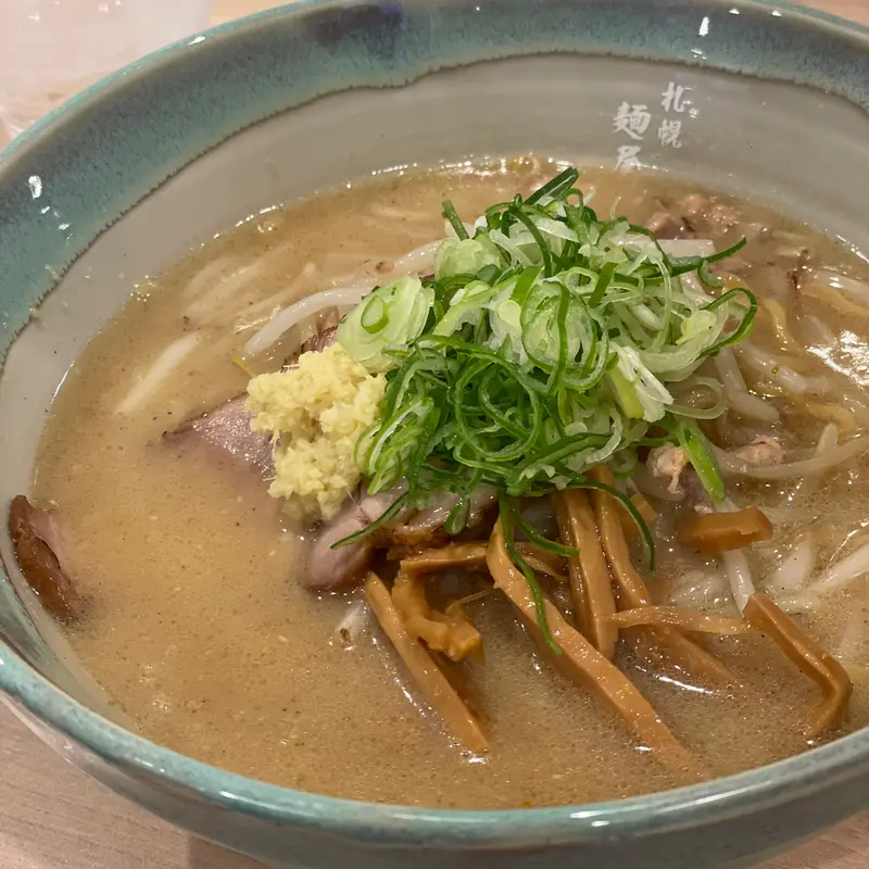 今回ご紹介するのは「みそラーメン」。札幌ラーメン界のレジェンド店「純連」の暖簾分けということでガッツリこってり系なのかと思いきや、スープはすいすい飲み進めてしまうまろやかさとなっております。麺は中太縮れ麺、トッピングは柔らかチャーシューと刻みメンマ、もやし、ネギ。それと忘れてはいけないのがラーメンの中央に鎮座する生姜!これをお好みのタイミングでスープに混ぜることで生姜がピリッと効いたスープに味代わりし、一度で何度も楽しめる仕様となっております。