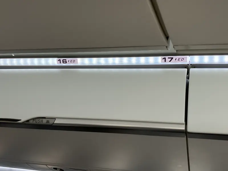 座席は、通路を挟んで左右2列、全18列の72席で、最前列の1列目が非常口座席になります。