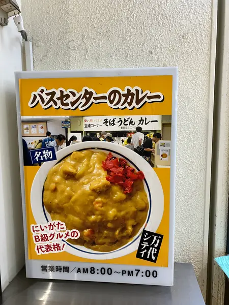 お店の正式な名前は「万代そば」ですが、JR新潟駅の近くにある「万代シテイバスセンタービル」の内にお店があり、提供されるカレーが美味しくて有名になったことから、『バスセンターのカレー』と呼ばれています。
