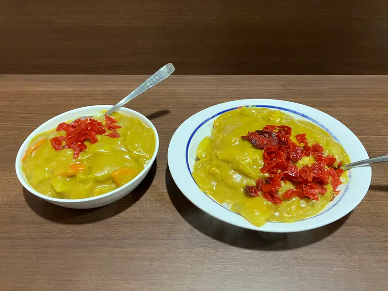 ピリッと辛く、スパイスの風味が香る黄色いルー。