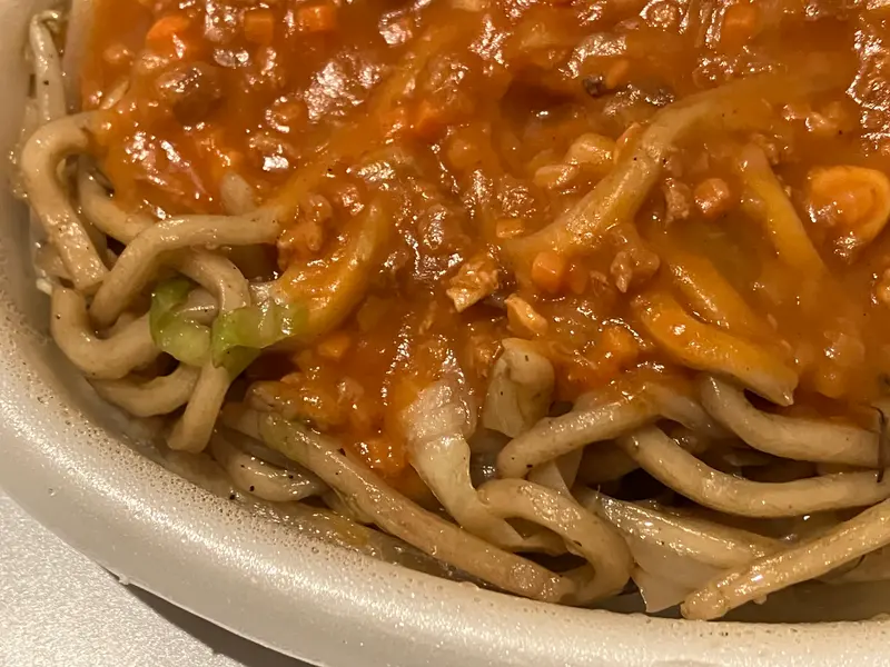 麺のモチモチした食感と少し甘めのミートソースがベストマッチ!!