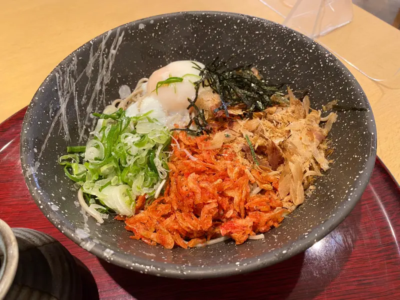サクサクの桜海老、玉子、鰹節は蕎麦との相性バツグンです。