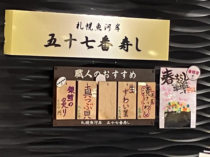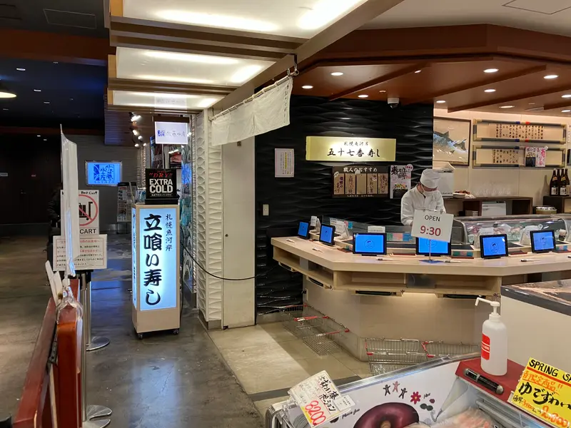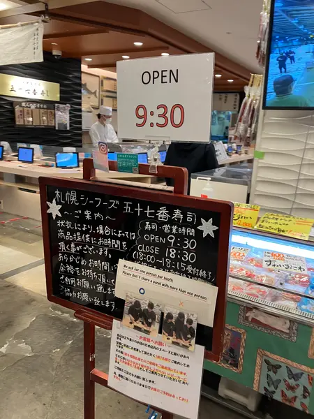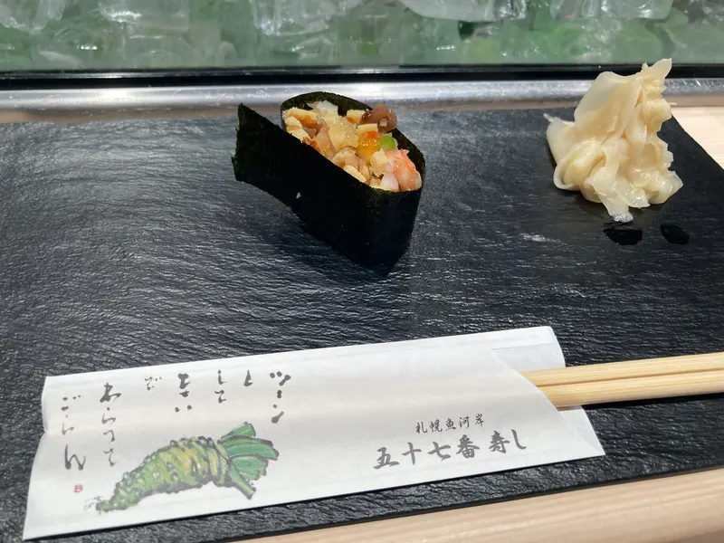 おすすめの一つ目は、国内線ターミナルビル2階の海産物土産店「札幌シーフーズ」内にある寿司屋「五十七番寿し」です。