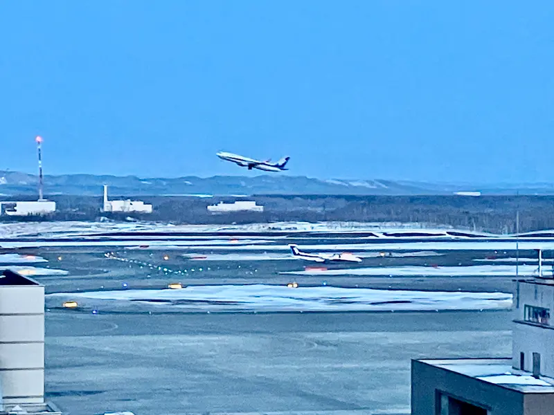 「ポルトムインターナショナル北海道」は、空港直結のホテルですので、滑走路側のお部屋を予約すれば、離陸・着陸する飛行機がお部屋の窓から見ることができます!
