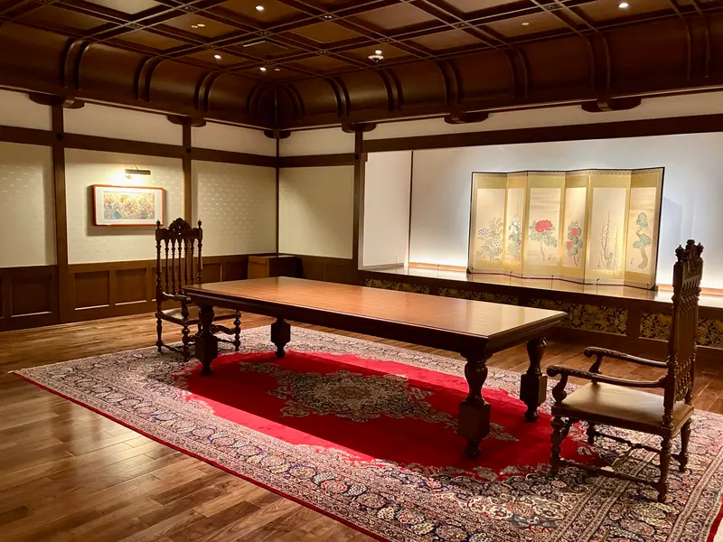 4階にある「ゲストサロン」は、宿泊者のみ入れる場所で、江戸時代の絵師たちによる作品などが並びます。