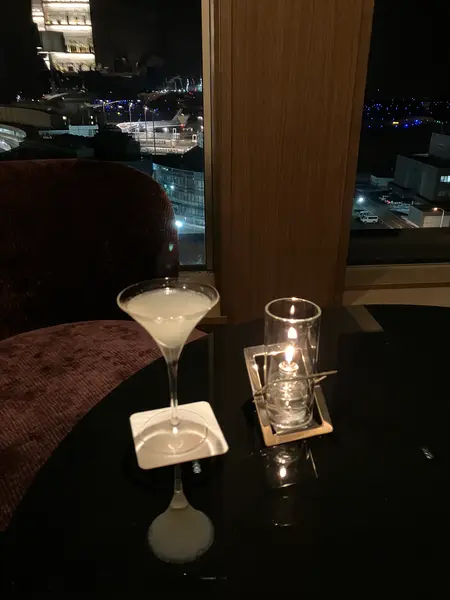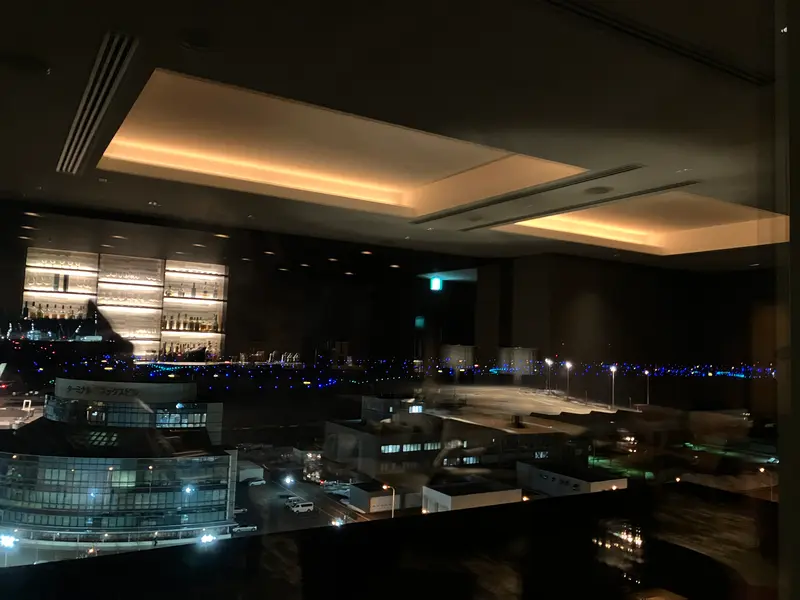 ホテル最上階のバーで、お酒と空港夜景を楽しむ